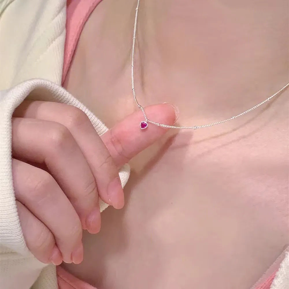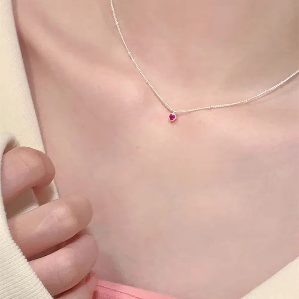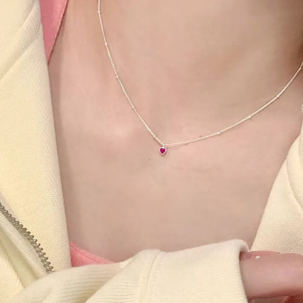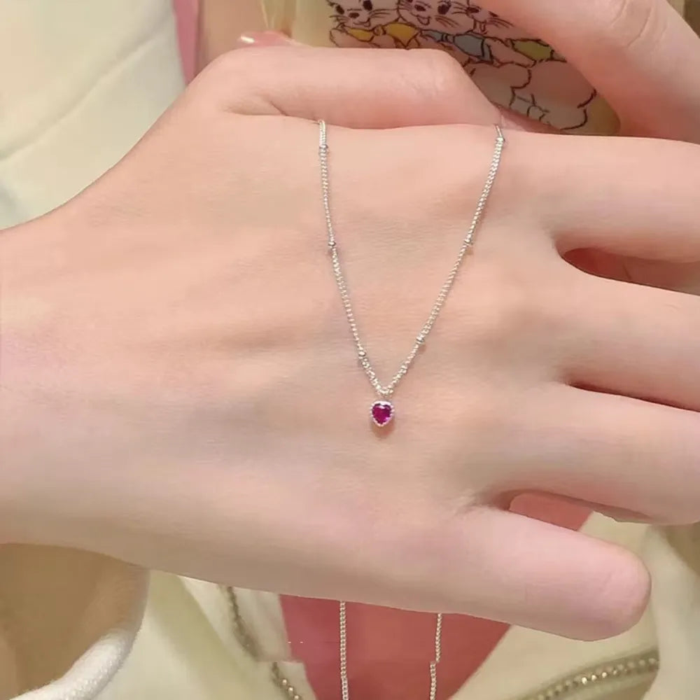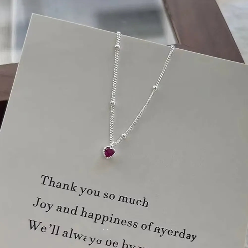 JITULEZHI – Pingente Coração em Prata 925 com Zircônia Vermelha