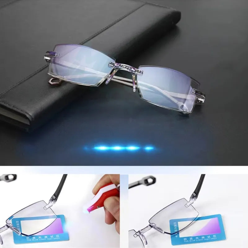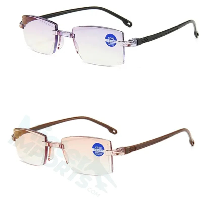 Óculos de Leitura Sem Aro – Bifocal Anti Luz Azul, Masculino/Feminino, Presbiopia +1.50 / +2.00 (Kit com 2 Pares)