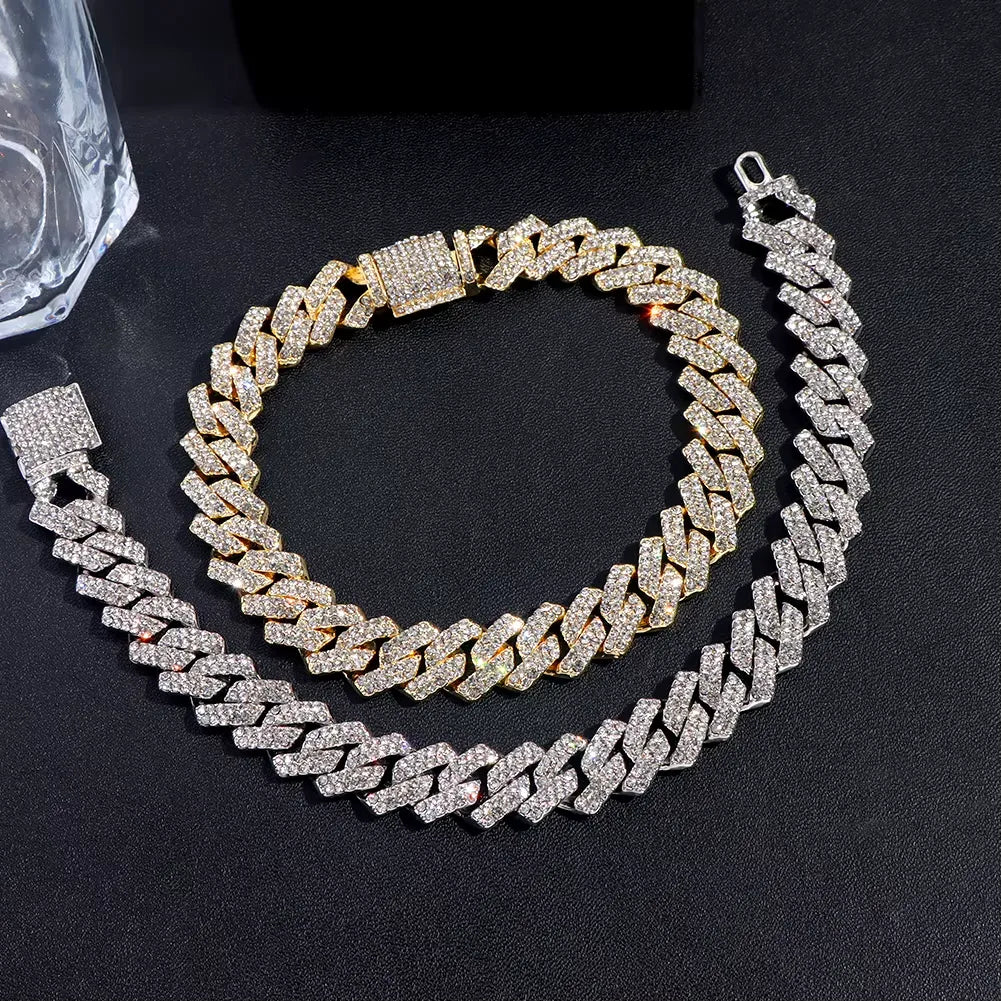 SUBOLLOW – Pulseira Miami Cuban com Rhinestones 14MM